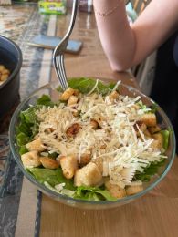 SarahFanova, оригинальный рецепт Цезаря без курицы, креветок и т.д Только листья салата, сухарики, соус и сыр.