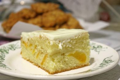 Пеку такой пирог уже 9 лет, но вместо персиков кладу размороженную вишню. Все в восторге! Спасибо Вам за рецепт!
