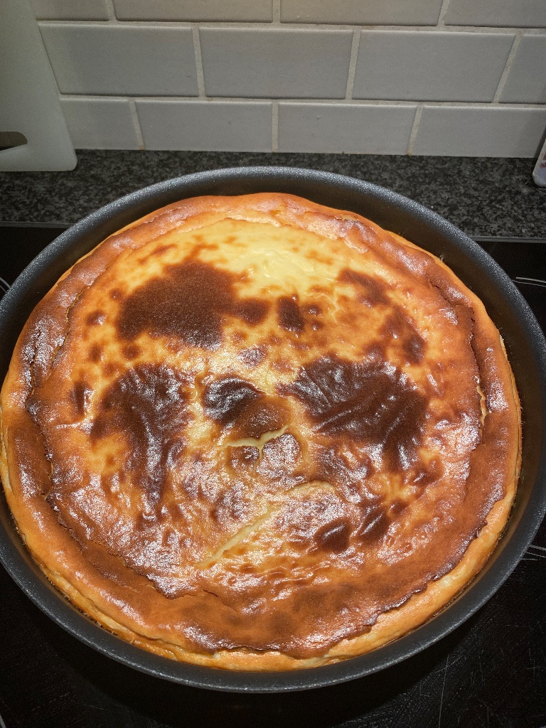 Сразу, как увидела рецепт, пошла в магазин все докупать. Потрясающе вкусно получилось! Невероятный вкус. Очень нежный, тающий десерт. Как суфле. Я добавила 150 г сахара, для меня в самый раз. Масса получается жидкой, поэтому без бумаги лучше не готовить. Я меняла режимы в духовке, чтобы получилась корочка, включала и гриль, и верхний нагрев, и конвекцию. В итоге за 40 минут добилась нужного результата:) Настя, большое спасибо за рецепт, фото попозже выложу 😊