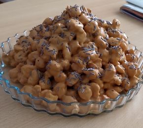 Очень вкусный торт, никак не на 6 порций. Получился один средний и один маленький тортик. Я добавила в крем обжаренных рубленных грецких орехов и 40 г меда, потому что в банке сгущенки оказалось 340 г. Крем был жидкий, стекал, и я оставила кусочки теста в кастрюле с кремом на ночь, а утром всё хорошо собралось в муравейник. Торт в меру мягкий, некоторые кусочки более хрустящие, в общем очень вкусно!
