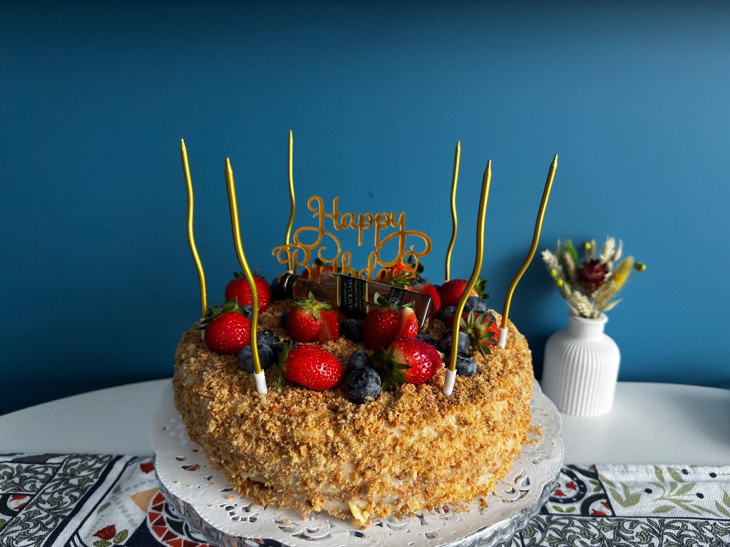 Набралась мужества и решила сегодня испечь этот торт (ранее сторонилась Наполеонов) для бабушки в честь праздника. Очень довольна!