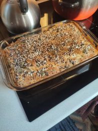 Посыпать кунжутом и семенами льна.