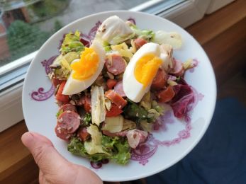 Вместо охотничьих колбасок можно использовать любые копчености, отварное мясо, деликатесы и т.д.