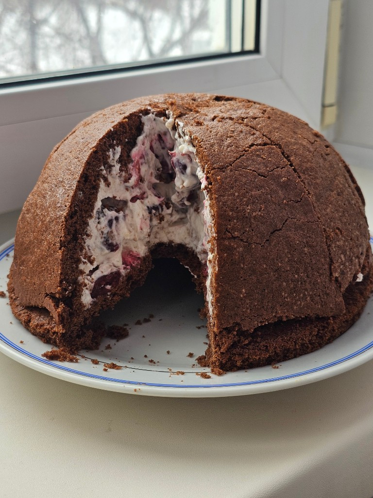 Торт получился очень-очень вкусный. Шоколадный корж, великолепная, нежная начинка с очень богатым вкусом.