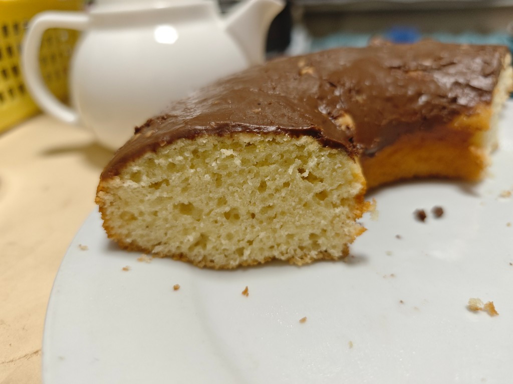 Приготовила кекс.Очень понравился. Верх помазала оставшейся сгущенкой и посыпала сверху кокосовой стружкой.