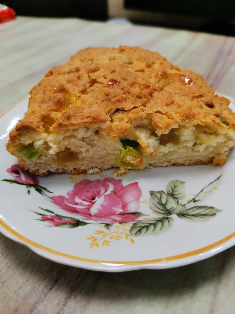 Пекла этот пирог неоднократно. В комментариях у многих растворяется в тесте мармелад… 😁 Сколько пекла — все кусочки на месте. В этот раз отдельно положила тесто без мармелада на дно формы,т. к. у меня тоже прилипает подтаявший мармелад ко дну и бортикам формы. В остальное вмешала мармелад (вычитала в комментариях). В керамическую форму положила бумагу для выпечки. Итог порадовал :донышко легко отошло от бумаги, ровненькое. Минимально прилип карамелизированный мармелад по бортикам. И пользую любой мармелад — тот, что есть в наличии 😀. Ингредиенты уменьшала в 2 раза. Количество сахара, чуть меньше, но меня количество сахара не напрягает. Быстрый и вкусный пирог. Можно делать потоньше, будет лучше, но у меня такая форма, не хочется оставлять тесто😜… Спасибо, как всегда Анастасии.