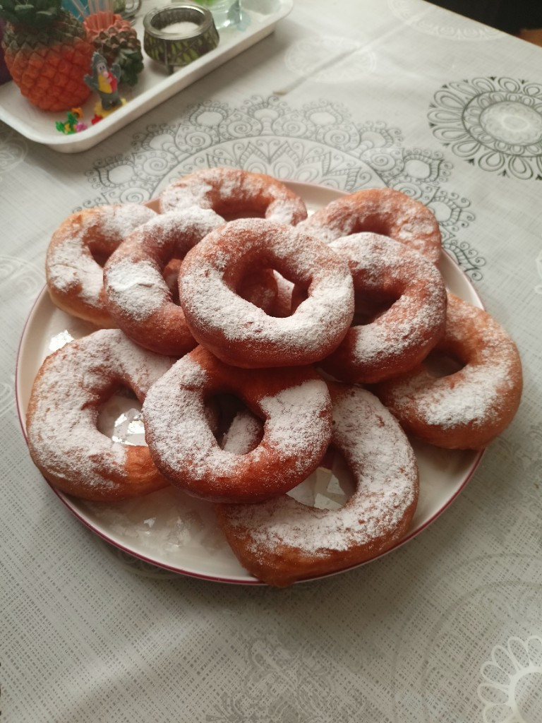 Мне лень было замерять , ну ничего, поедим. На фото еще 8–9 маленьких не вместилось. С дочкой вчера попробовали маленькие, тесто классное, но сахар подвёл, не сладкие получились. В следующем году ванилина и сахара больше добавлю.