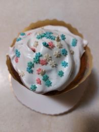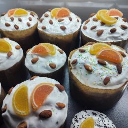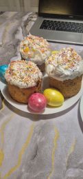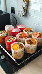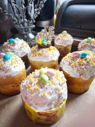 Мне сейчас нельзя выпечку с дрожжами, поэтому на Пасху испекла эти кексы и украсила глазурью и посыпкой. Очень вкусно! Правда мне потребовалось 2 апельсина (они были не очень крупные). Получилось очень вкусно.