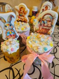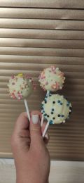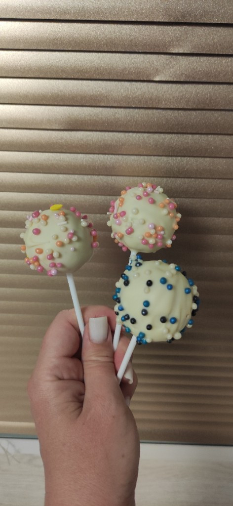 Самое сложное было то, что шоколад полностью стекал с кейк-попса. Почитав комментарии, положила шарики на палочках в холодильник. После этого шоколад быстро схватывался на кейк-попсах. С белым шоколадом и посылкой получилось прям праздничное Пасхальное угощение.
