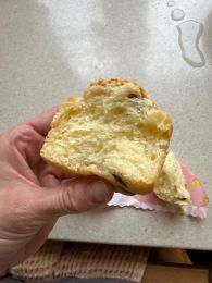 Потрясающая текстура у булочек, нежнейшие! Я внутрь положила чуть вареной сгущенки, а верх смазала яйцом, поэтому они такие загорелые. Большое спасибо за рецепт, Настя!